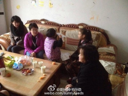 “心在一起-儿童家庭关怀”项目走进北川家访第一站:28日下午由班主任陪同,三年级小王;父母都在青海玉树打工小卖买化妆品。父亲是青海湟源人。每年父母轮流回来一次。父曾有婚,有两男孩上大学,他们夫妻要赡养七口人。经济条件较好,房子有四层,300平,有车。女孩有个很好热闹的妹妹,他们与奶奶生活。奶奶很慈爱但不认字。