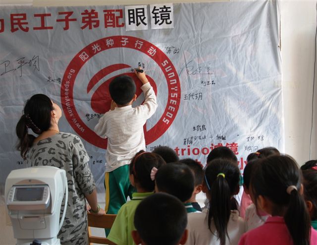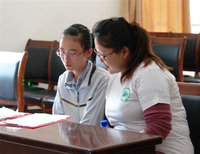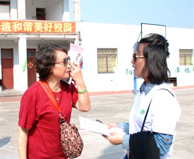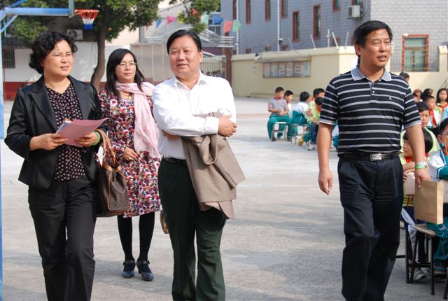 校长和忙着发现场动态围脖的阳光志愿者辛荣